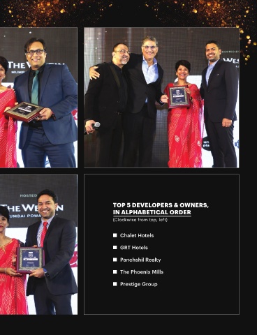 TOP 5 DEVELOPERS & OWNERS, IN ALPHABETICAL ORDER (Clockwise from top, left) n Chalet Hotels n GRT Hotels n Panchshil Realty n The Phoenix Mills n Prestige Group 125 www.hospitality-horizon.com DECEMBER 2023-JANUARY 2024 hospitality horizon