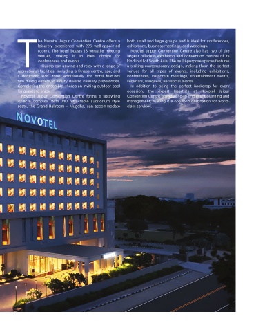 he Novotel Jaipur Convention Centre offers a both small and large groups and is ideal for conferences,