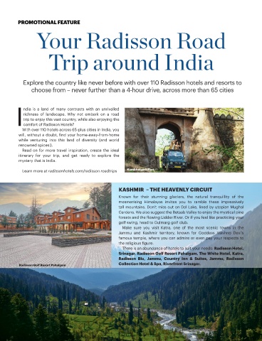 Explore the country like never before with over 110 Radisson hotels and resorts to