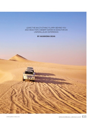 LEAVE THE MULTI-ETHNIC FLURRY BEHIND YOU AND HEAD FOR A DESERT SAFARI IN DOHA FOR AN UNPARALLELED EXPERIENCE BY AKANKSHA DEAN 153 www.hospitality-horizon.com OCTOBER -NOVEMBER 2023 hospitality horizon