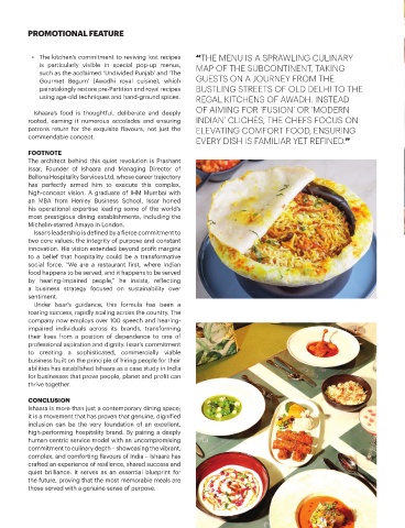 rooted, earning it numerous accolades and ensuring INDIAN’ CLICHÉS, THE CHEFS FOCUS ON