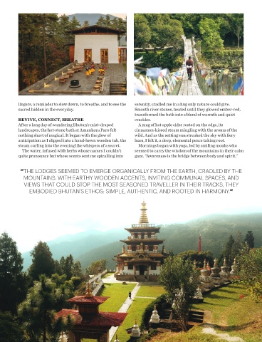 landscapes, the hot-stone bath at Amankora Paro felt cinnamon-kissed steam mingling with the aroma of the