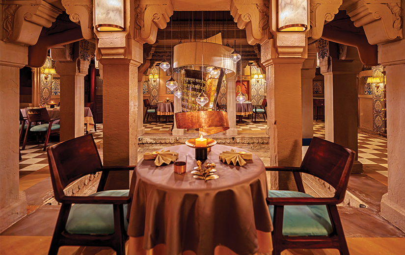 The courtyard, once a stage for royal performances, now flaunts an air of old world charm, the grandeur of a Sanskrit adorned metal chandelier above, walls glittering with traditional ‘thikri’ work, and sitar melodies that could make even your chaotic brain pause for a moment.